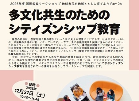 がら、改めて多様性の尊重や多文化共生社会について、グローバル・シティズンシップの視点から考える機会として、メディアリテラシーや合意形成のあり方などについて学ぶシティズンシップ教育を推進されている講師をお招きしてワークショップを開催します。